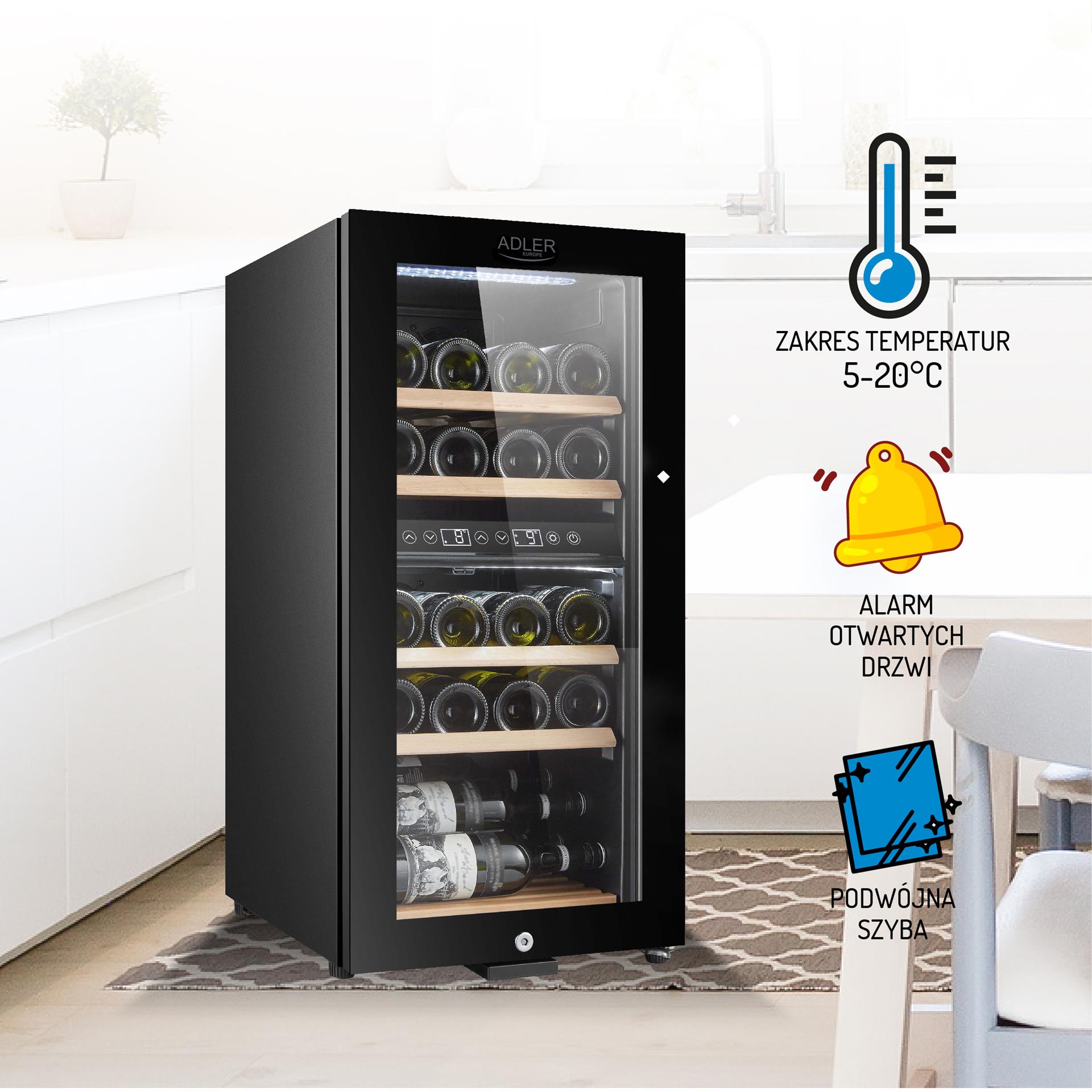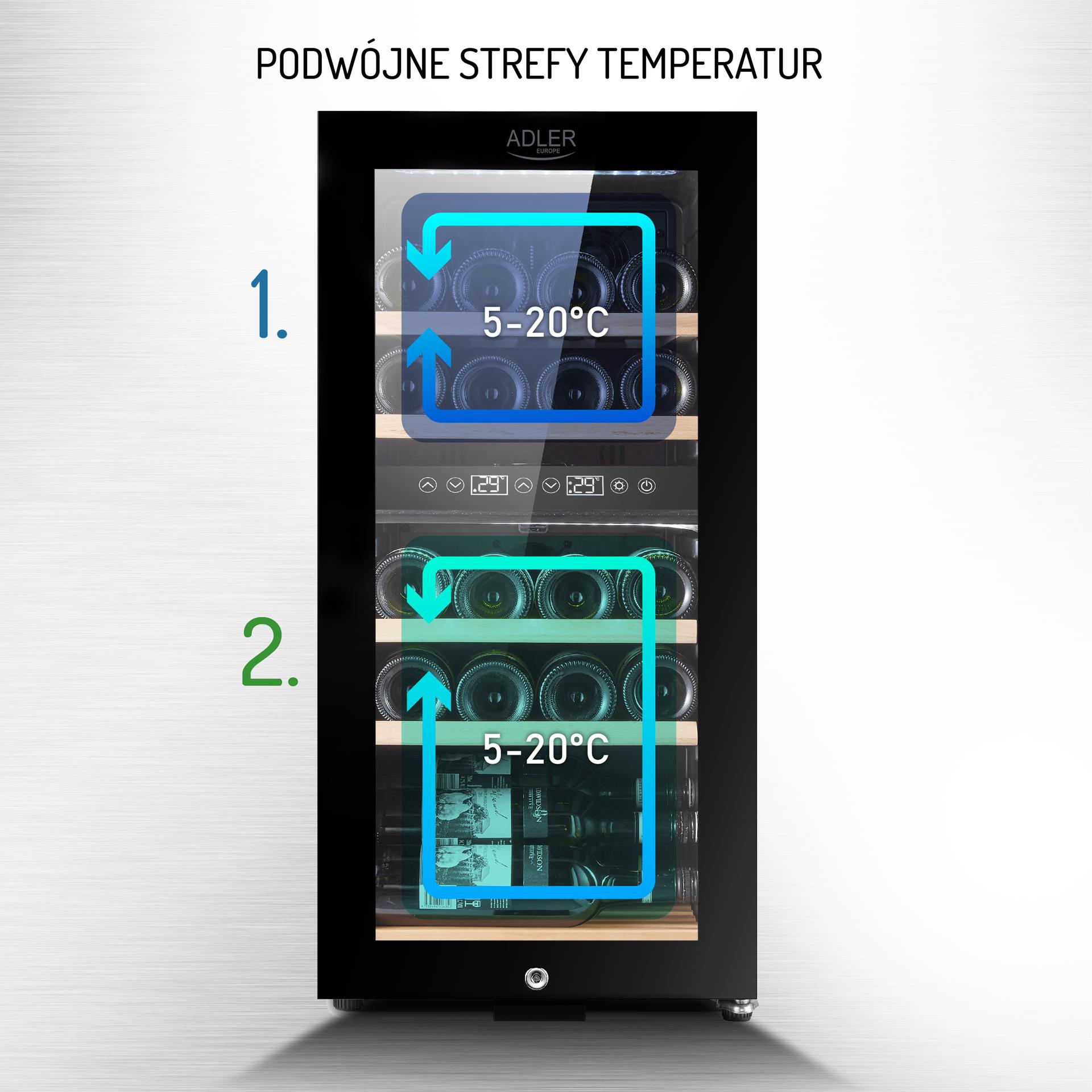 Lodówka na wino, dwustrefowa, na 24 butelki, pojemność 60L Adler AD 8080 AD8080