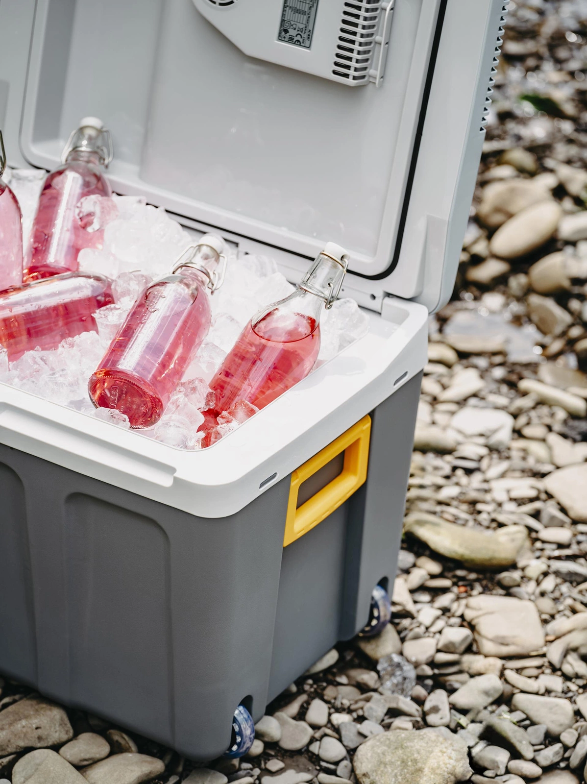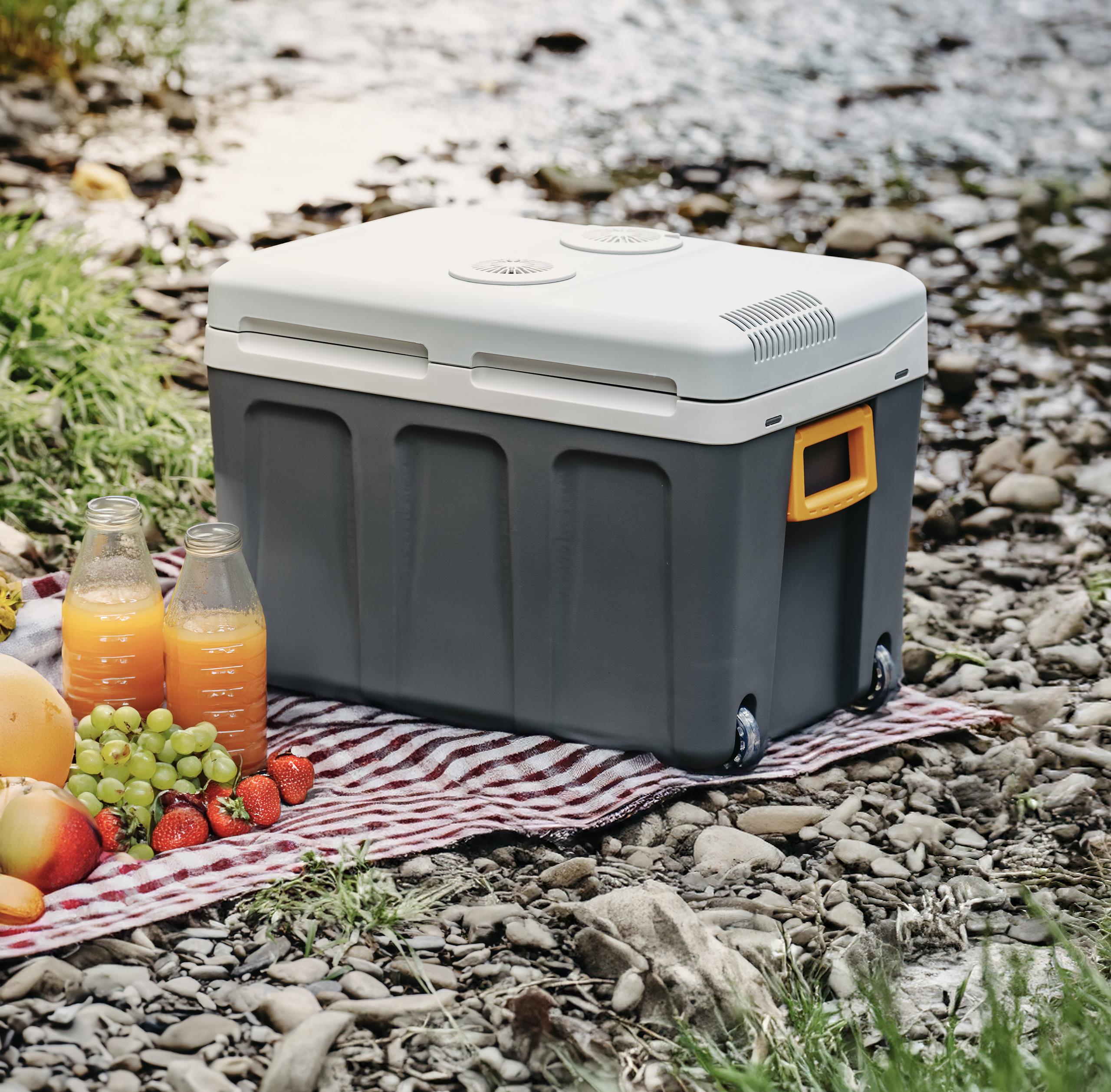 - Nasz model lodówki turystycznej posiada dużą komorę chłodzącą o pojemności 40 litrów. Dzięki temu zabierzesz napoje i jedzenie dla całej rodziny w jednym pojemniku, bez konieczności szykowania dodatkowych toreb i pakunków! Dzięki izolacji umieszczonej w obudowie nie musimy martwić się, że coś stanie się z jedzeniem - gwarantuje ona utrzymanie idealnej i stałej temperatury. Wieko lodówki wyposażone jest w otwory wentylacyjne, które dodatkowo pomagają zapewnić prawidłowy obieg powietrza. Pokrywę łatwo otworzyć dzięki wytrzymałym zawiasom a całą lodówkę przenosić za pomocą wygodnej rączki. Estetyczny design naszej lodówki pozwala zabierać ją ze sobą w każdą podróż a nawet przyjęcia na dworze!