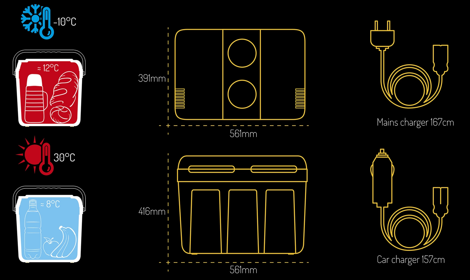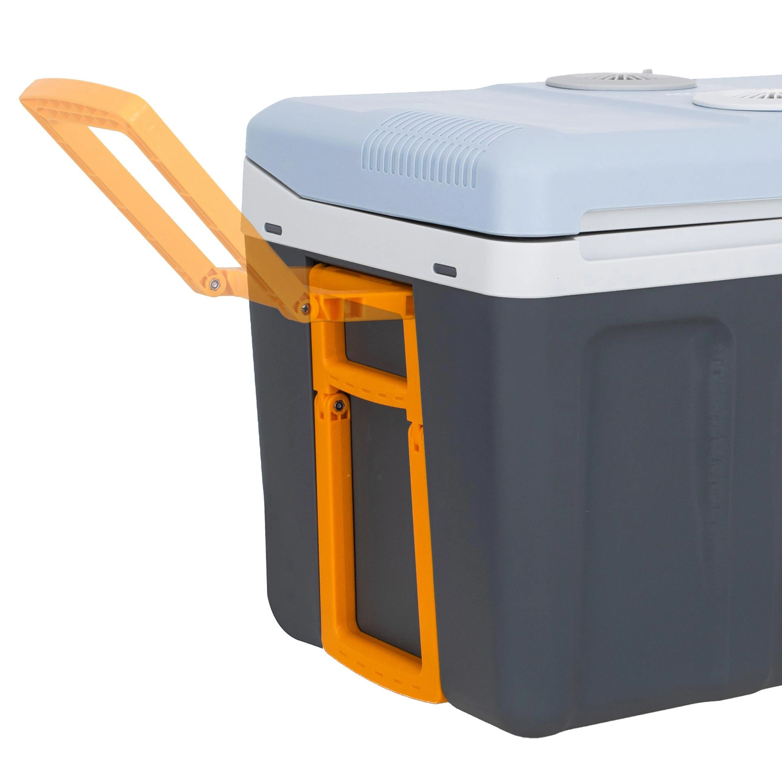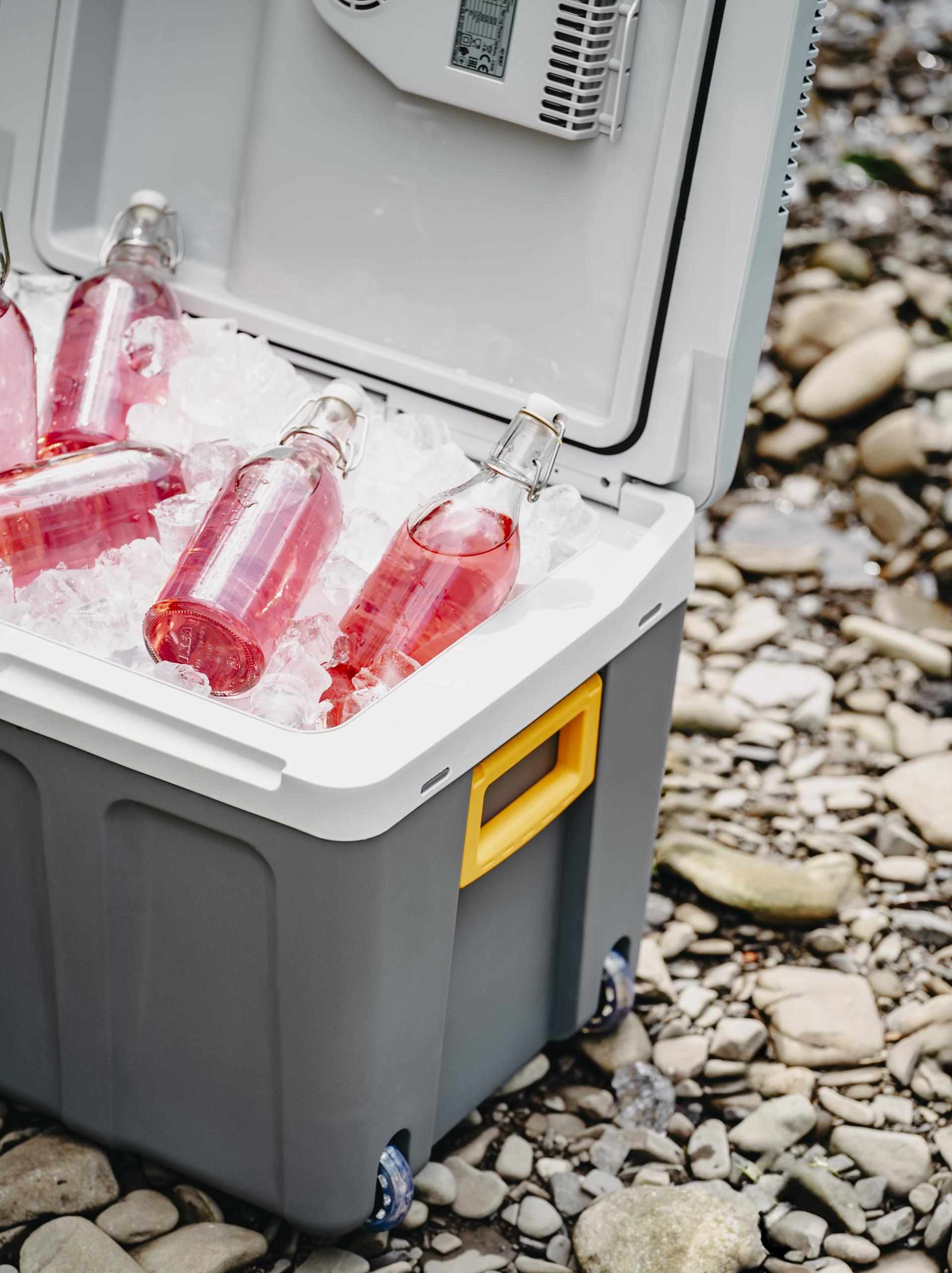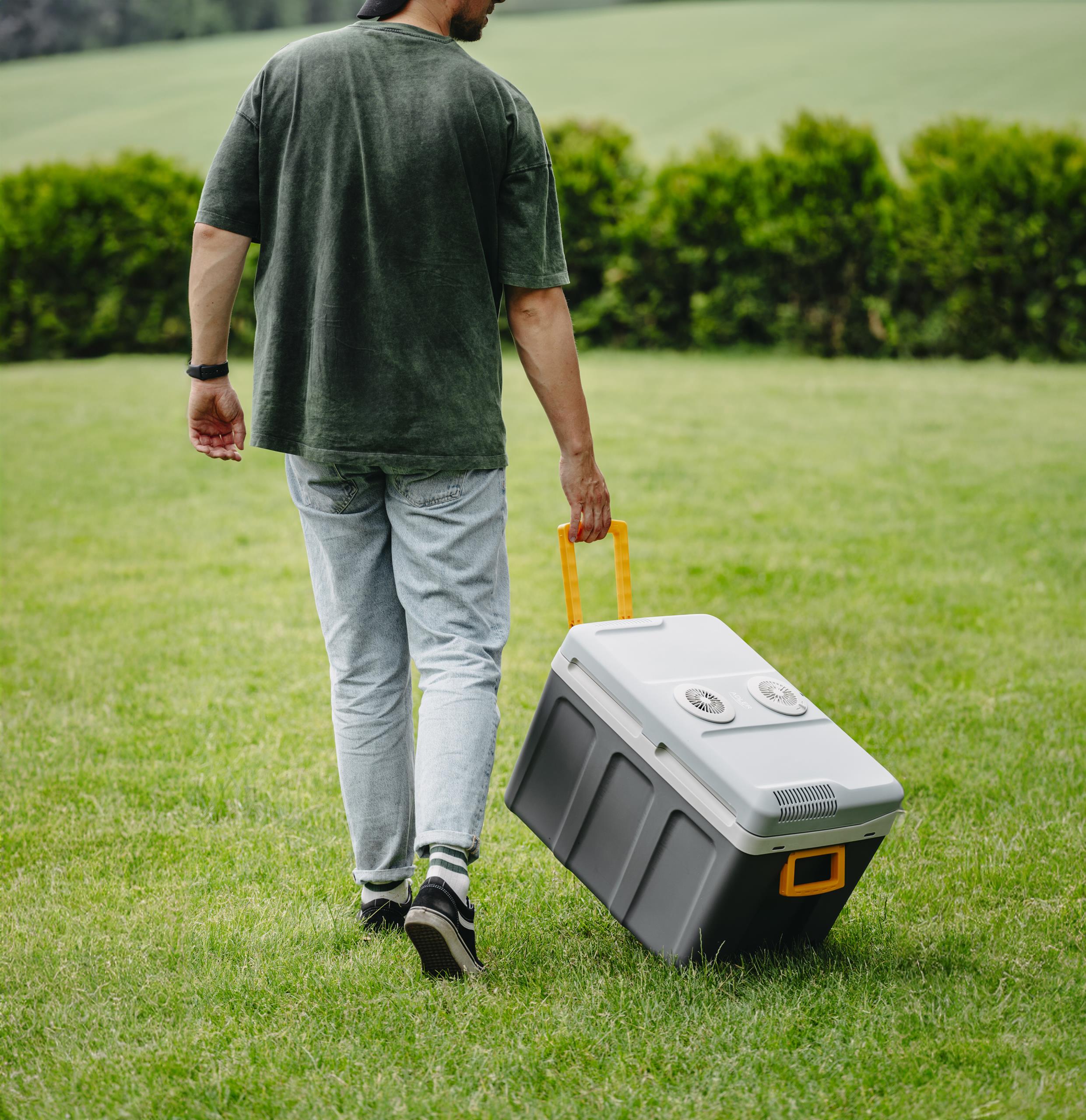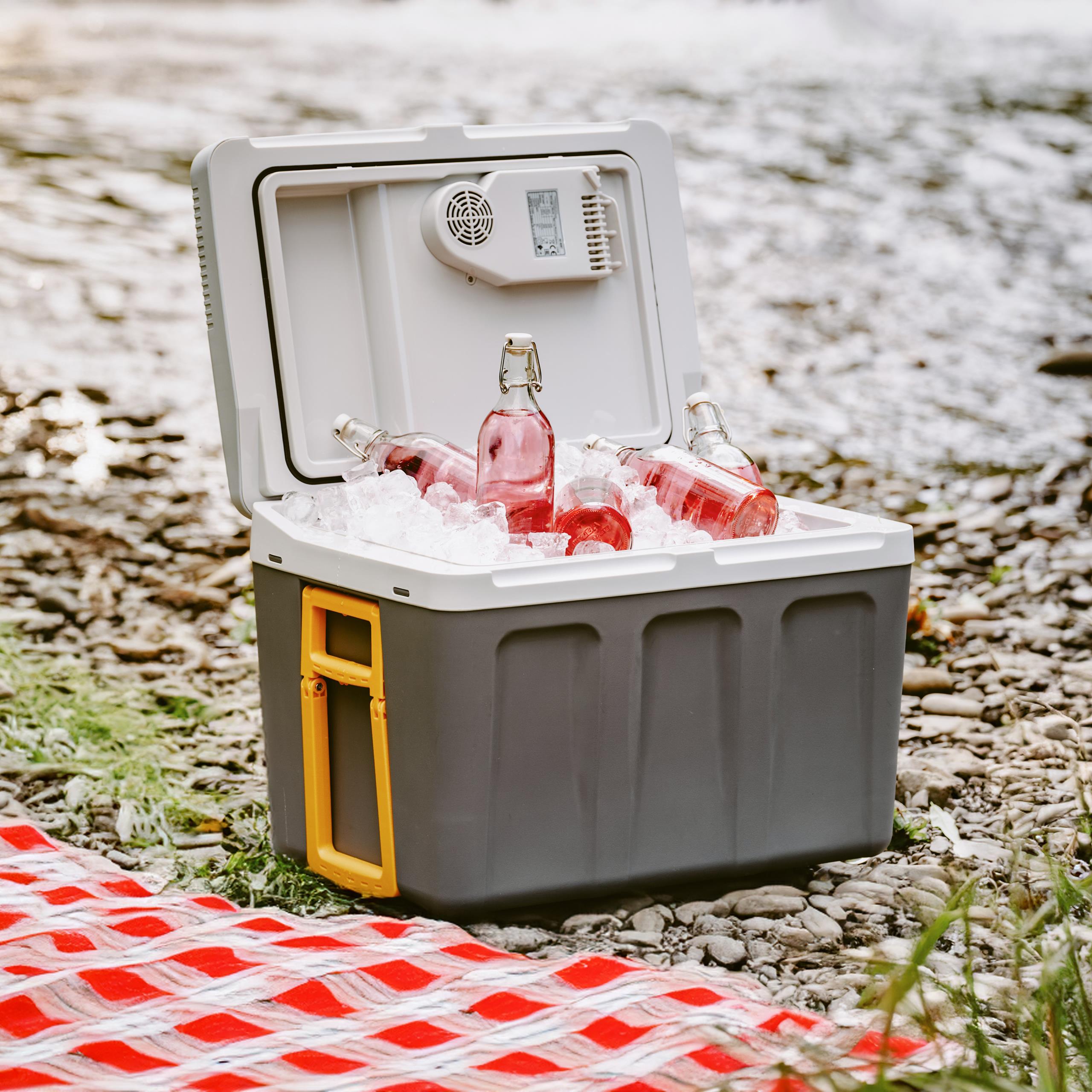 - Duża komora chłodząca mieści aż 40 litrów. Użytkownik może podłączyć ją zarówno do sieci elektrycznej 230 V jak i samochodowego gniazdka zapalniczki 12 V. Dla ułatwienia została zainstalowana rączka, którą można schować w pokrywie lodówki. Po zamknięciu, lodówka turystyczna staje się wygodną walizką, zarówno estetyczną jak i wygodną w noszeniu. Zbyt wysoka temperatura potrafi uprzykrzyć nawet najbardziej upragniony wyjazd, dlatego weź ją ze sobą. Doceniamy słońce, możliwość opalania, ale czasami szukamy sposobu na szybkie ochłodzenie się i chcemy pozwolić odpocząć organizmowi od upału, wtedy chłodny napój z Naszej lodówki umili Ci dzień!