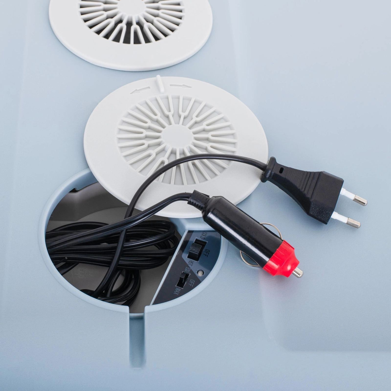 - Dzięki zasilaniu poprzez gniazdo zapalniczki w aucie, może być użytkowana podczas transportu