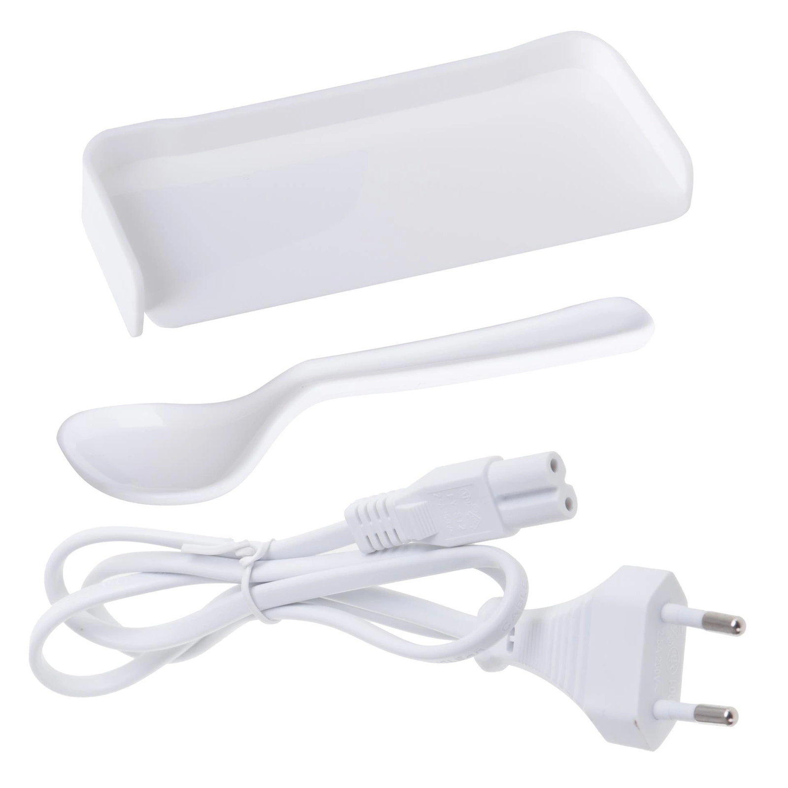 Odłączany kabel zasilający, kontrolka pracy i wbudowane miejsce na łyżkę zwiększają komfort użytkowania.