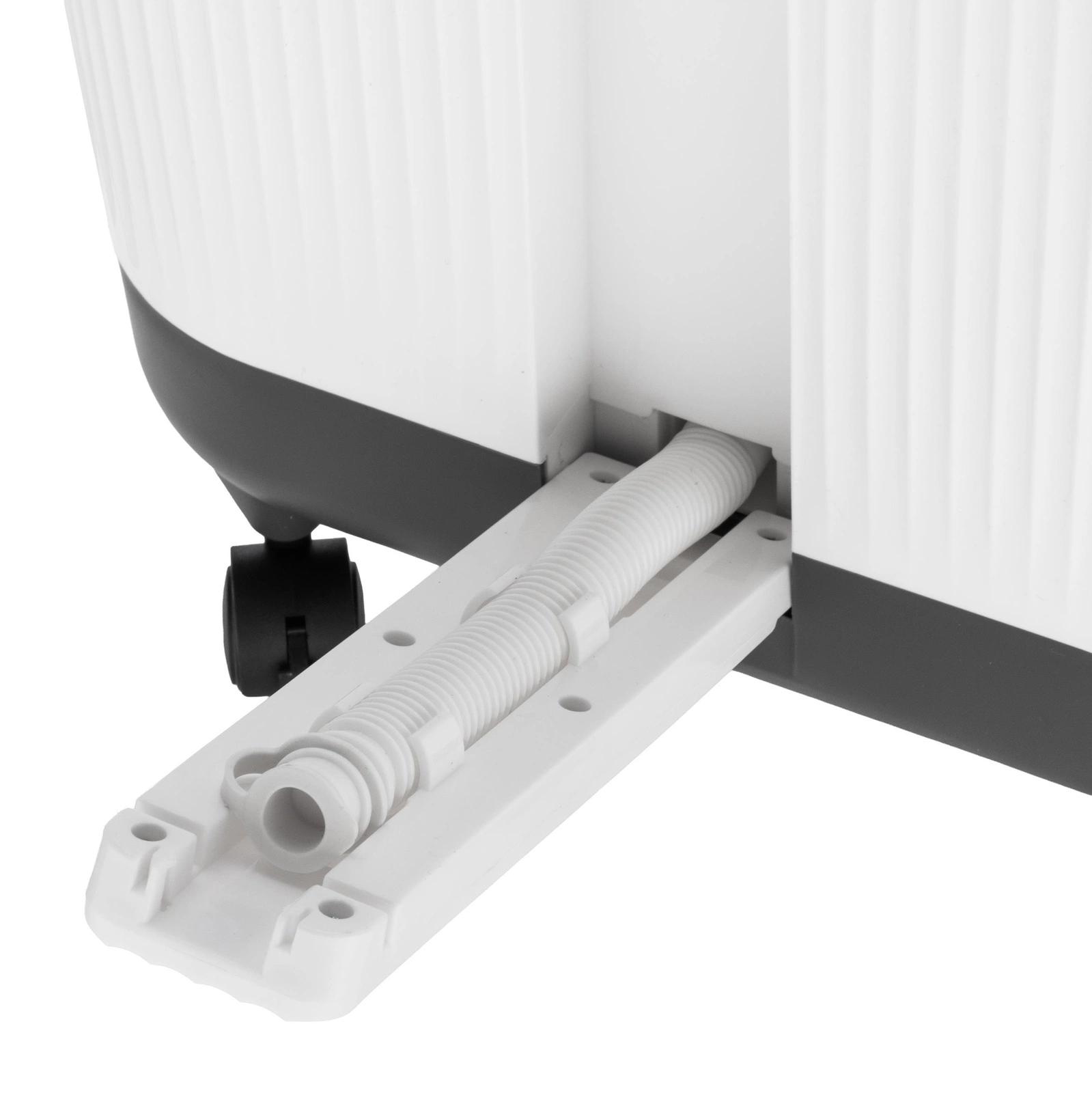 - Pokrywa przeciw chlapaniu: Chroni podłogę przed zachlapaniem, a także zachowuje ciepło wody, zapewniając porządek wokół urządzenia.