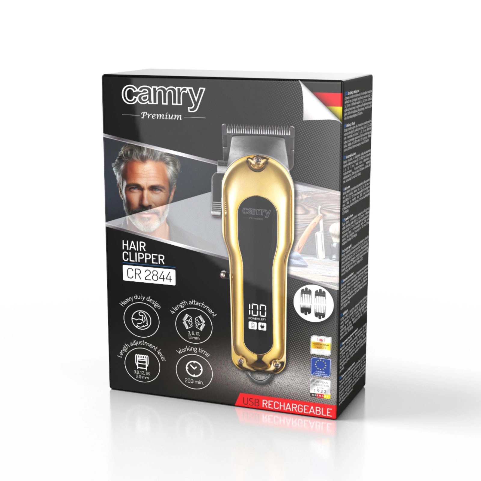 Maszynka do strzyżenia włosów akumulatorowa, 200 min pracy, LCD, USB Camry CR 2844