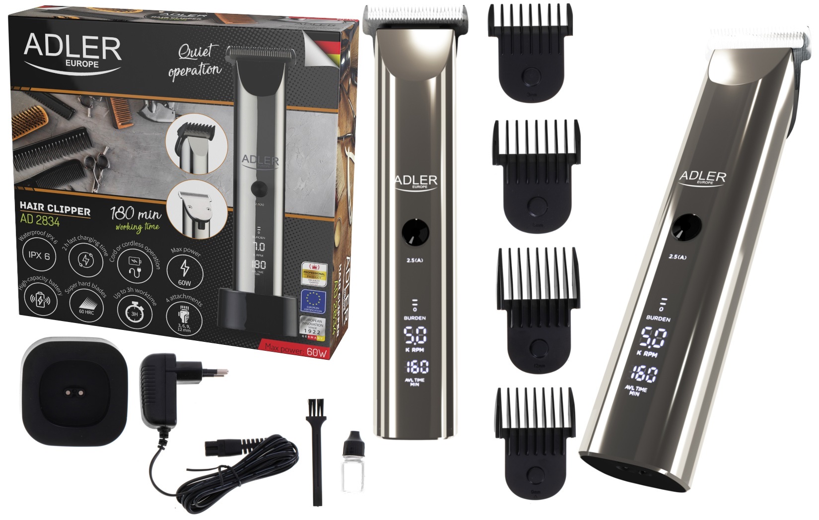 Maszynka do strzyżenia włosów z ekranem LCD, bezprzewodowa, lekka - Adler AD 2834