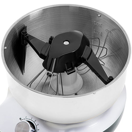 - Oryginalny system zagarniania żywności ze ścianek szerokiej misy gwarantuje idealne wymieszanie wszystkich składników