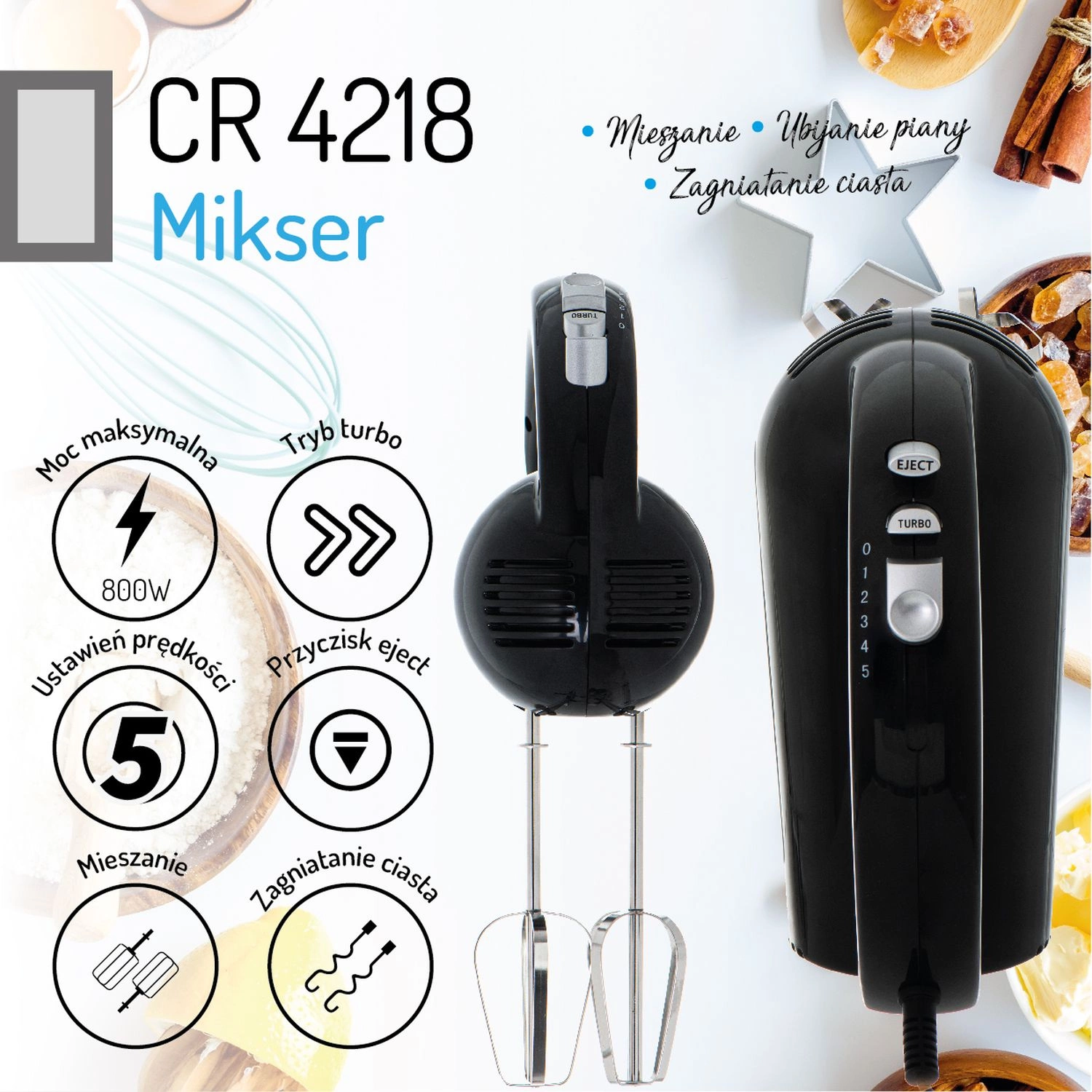Mikser ręczny 800W, 5 prędkości, Turbo, mieszadła do ciasta i piany Camry CR 4218