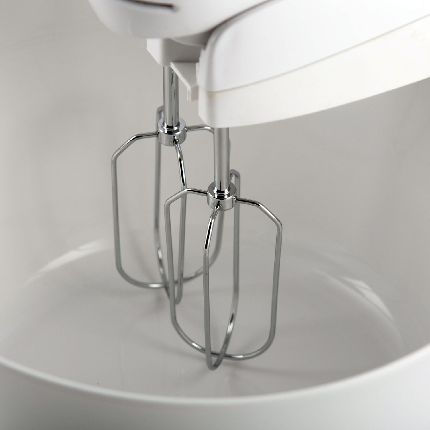 ❇️Mikser posiada dwa komplety wymiennych końcówek: jeden do mieszania i drugi do ugniatania ciasta. Dodatkowym atutem jest możliwość odłączenia miksera od stojaka, umożliwiając korzystanie z niego jako tradycyjnego miksera ręcznego. Z pięcioma prędkościami i przyciskiem Turbo, mikser dostosuje się do Twoich potrzeb, a misa o pojemności 3,4 litra umożliwi przygotowanie potraw nawet dla licznej rodziny.