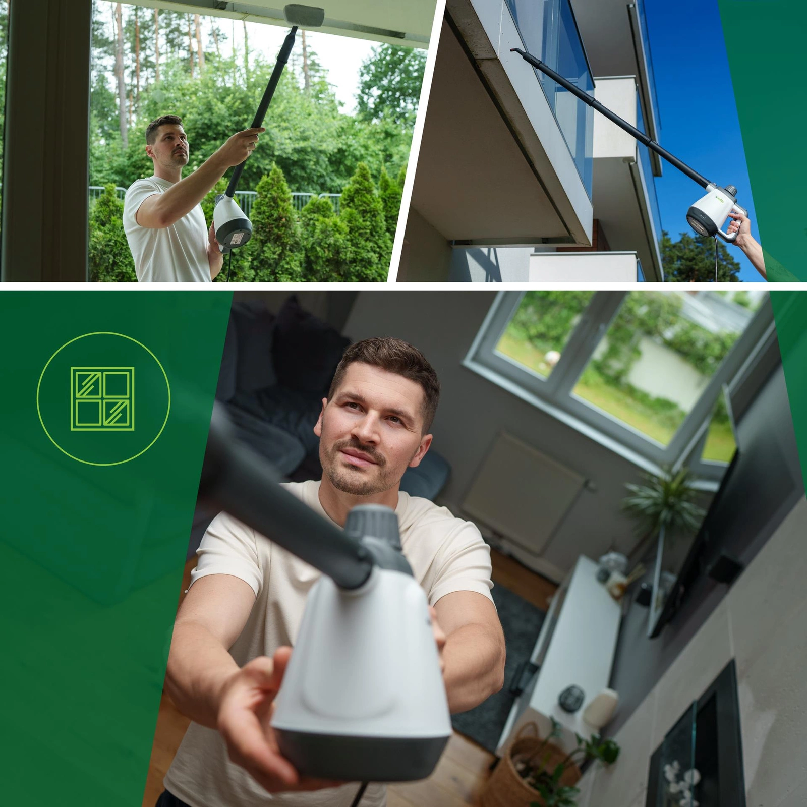 - Kompleksowym sprzątaniu całego domu, od podłóg po okna, dzięki bogatemu zestawowi akcesoriów.
