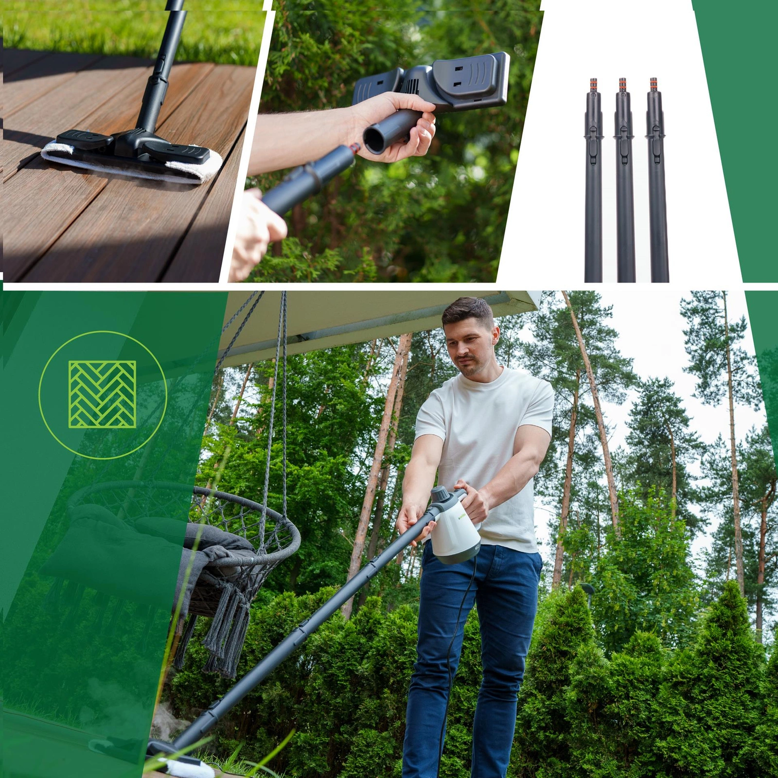 - Zestaw 3 rur przedłużających 33 cm: Pozwala na zwiększenie zasięgu do sprzątania wysokich miejsc bez potrzeby drabiny oraz ułatwia czyszczenie podłóg.