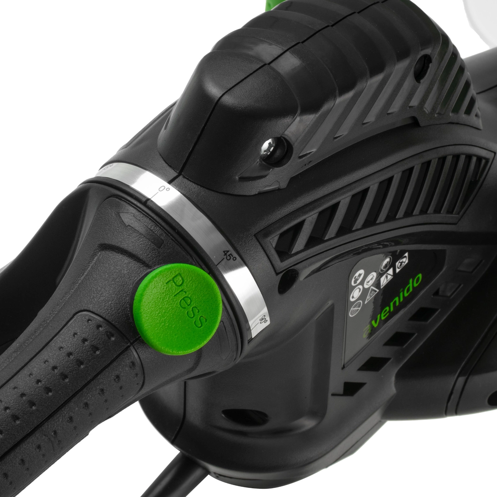 - Regulowany uchwyt (0-90°): Umożliwia wygodne cięcie pod różnymi kątami, co ułatwia formowanie żywopłotów.