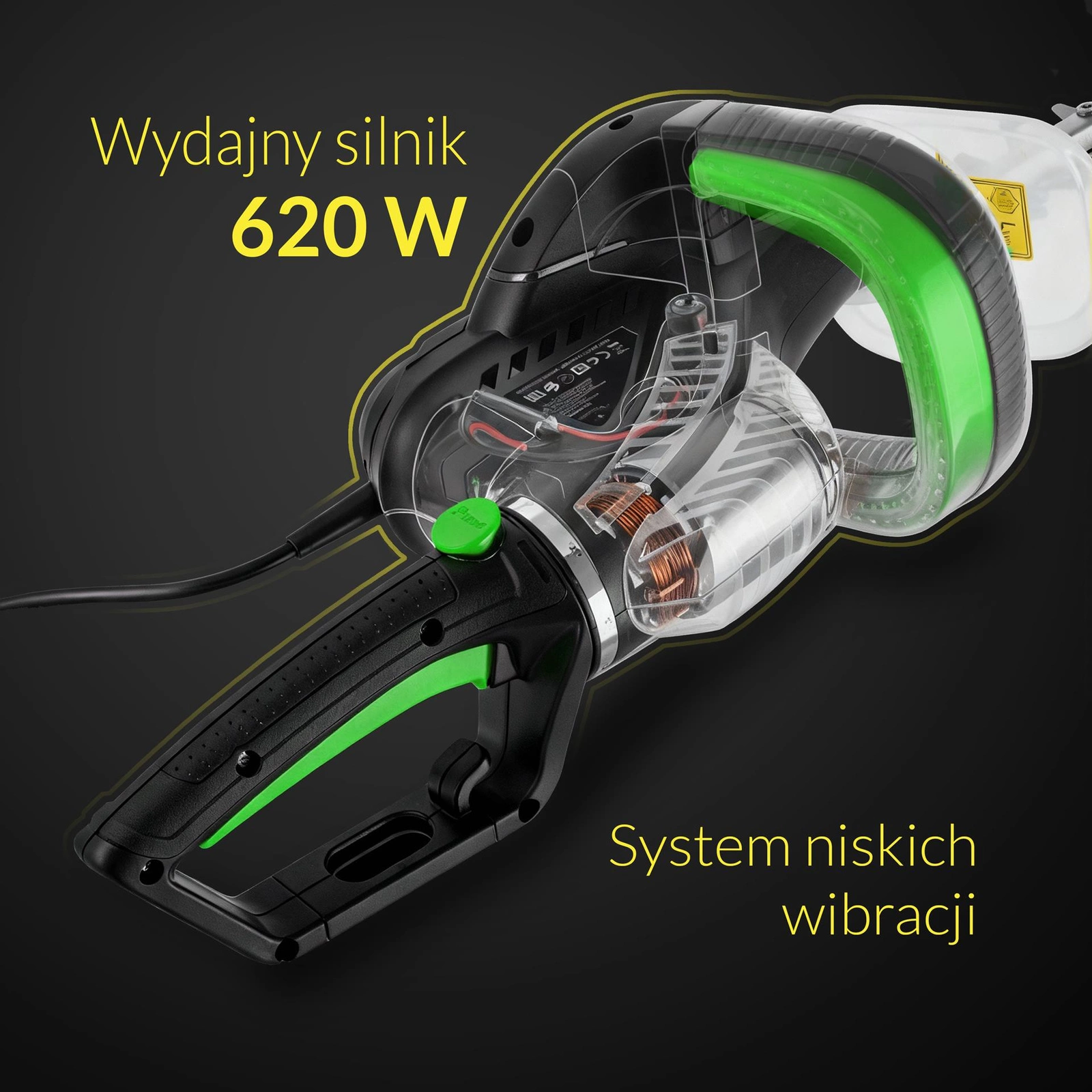 - Wydajny silnik 620 W: Zapewnia moc do cięcia gałęzi o grubości do 20 mm, co czyni nożyce wszechstronnymi.