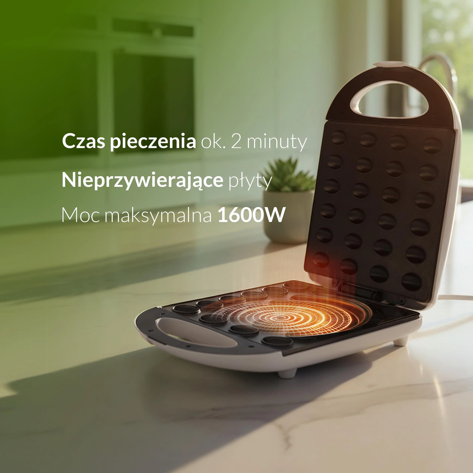 Powłoka Nieprzywierająca – Bez Stresu i Łatwe Czyszczenie: Ciasto nie przyklei się do płyt! Specjalna powłoka nieprzywierająca gwarantuje, że orzeszki z łatwością odchodzą, a samo czyszczenie zajmie Ci zaledwie chwilę.