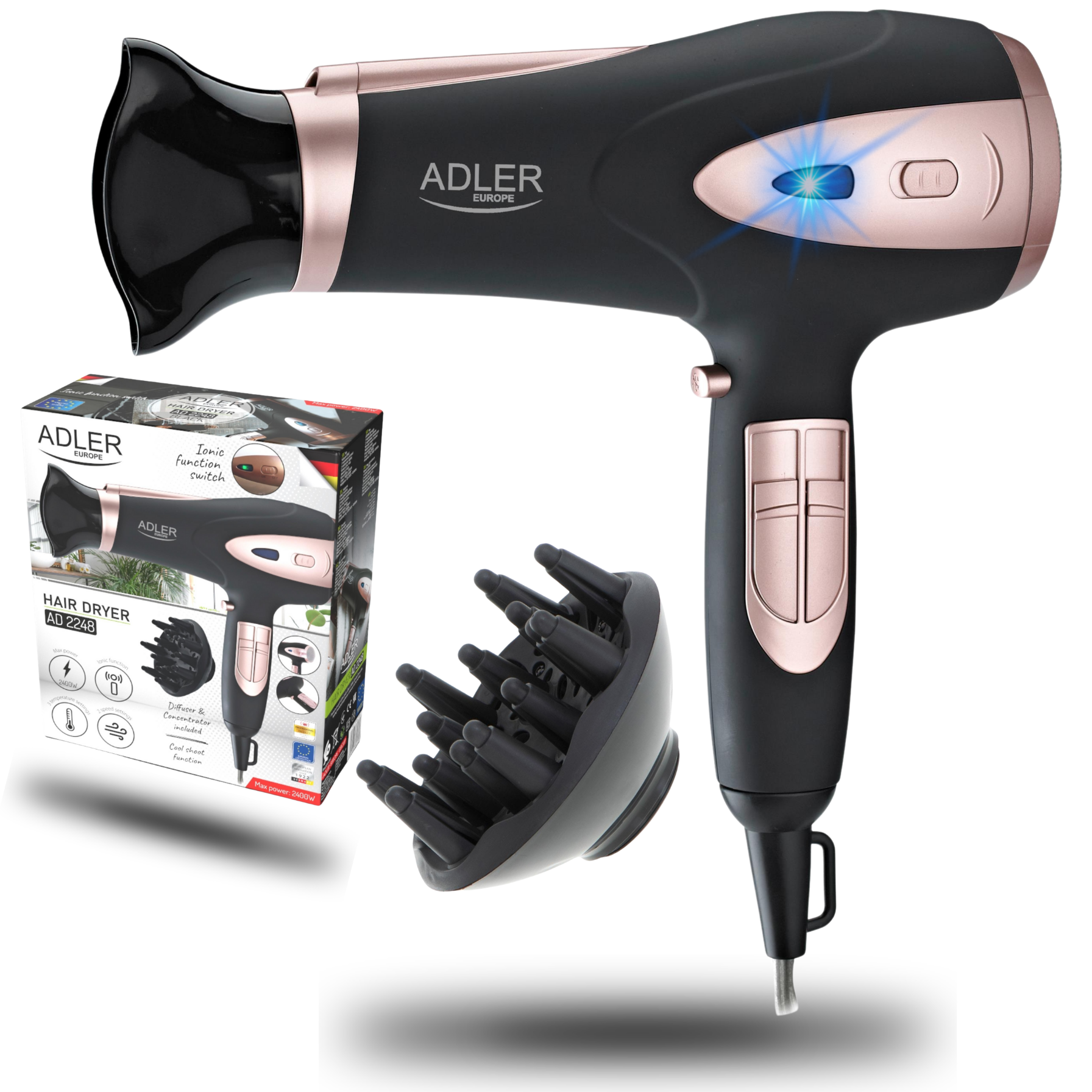 Profesjonalna Suszarka do Włosów 2200W z Jonizacją i Dyfuzorem Adler AD 2248