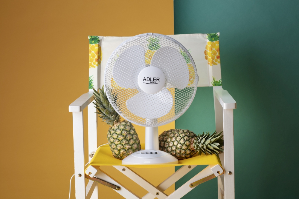 Wydajny wentylator o mocy 70 W. Wpływa na ochłodzenie pomieszczenia i zapewnienie w nim większej ilości świeżego powietrza. Posiada stabilną podstawę, co sprawia, że może być postawiony nawet na nierównej powierzchni bez obawy o przewrócenie. Dzięki obrotowej głowicy, jedno urządzenie może objąć zasięgiem większy obszar. Regulacja kąta nachylenia daje możliwość pionowej zmiany kierunku nadmuchu. Model AD 7303 jest wentylatorem średniej wielkości o średnicy 30 cm. Trzy prędkości pozwalają zadecydować o sile nadmuchu.
