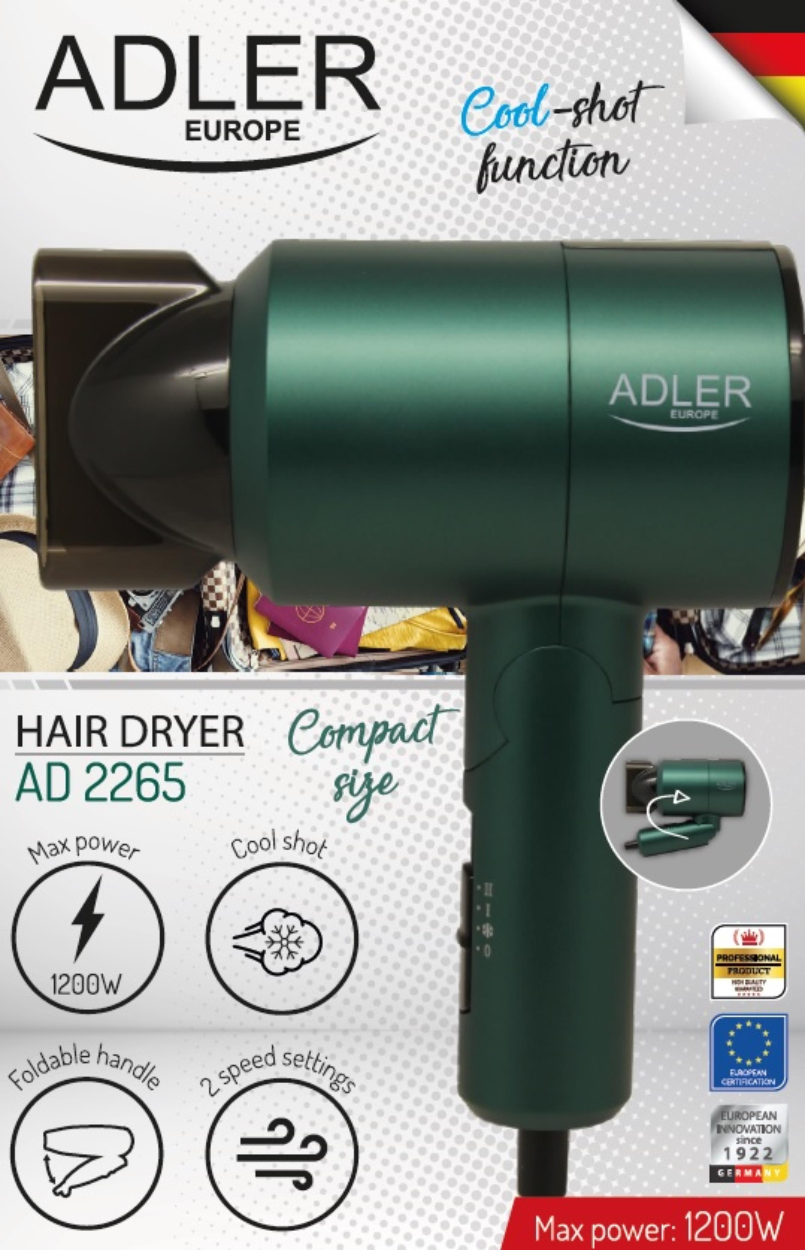 Suszarka do Włosów 1100W Kompaktowa i Lekka Adler AD2265