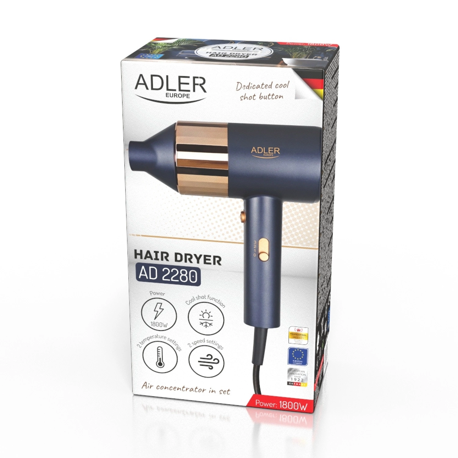 Adler AD 2280 Suszarka do włosów 1800W z zimnym nawiewem i koncentratorem