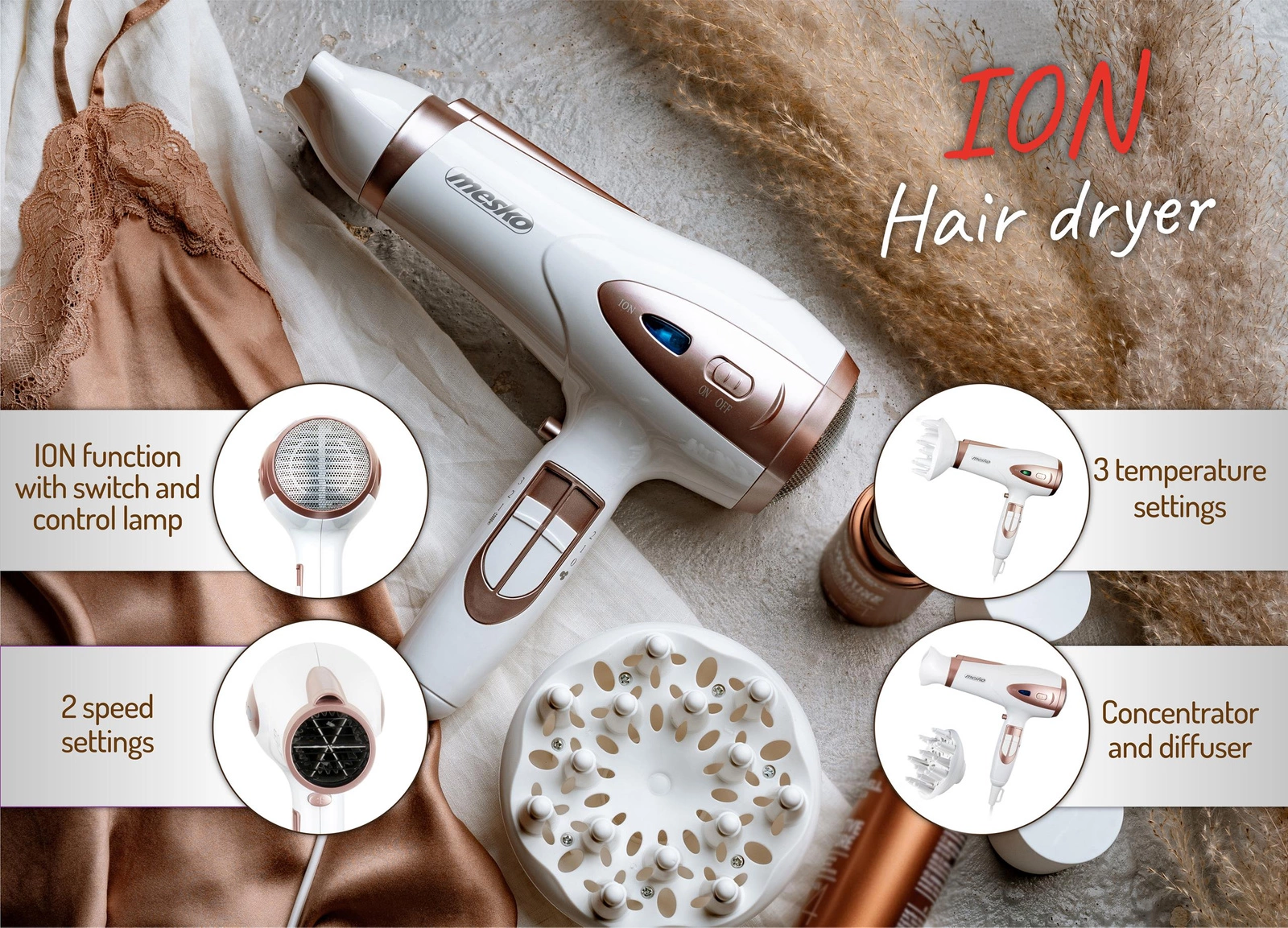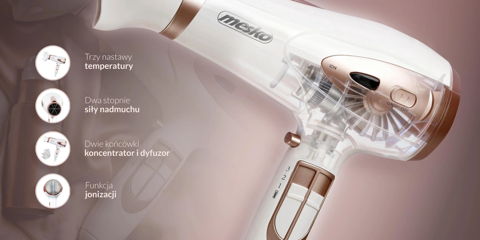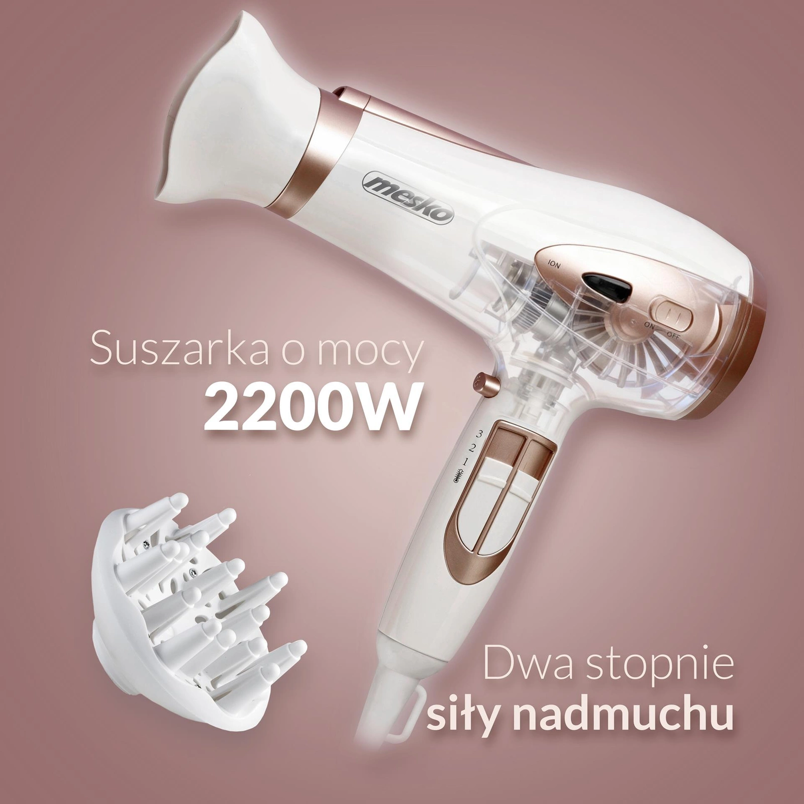 Suszarka do włosów 2400W Z JONIZACJĄ Zimny nawiew + Koncentrator i Dyfuzor MESKO | MS2274