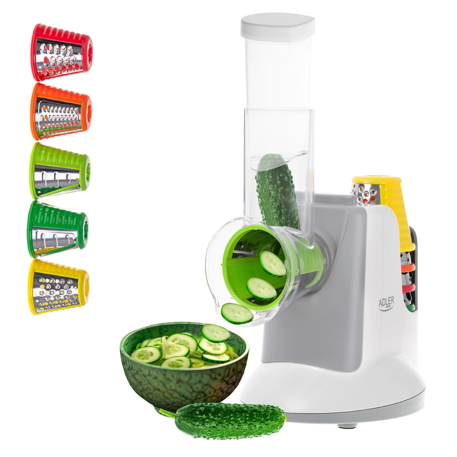 Krajalnica do warzyw z 5 wymiennymi nasadkami, kompaktowa i lekka, Adler AD 4815
