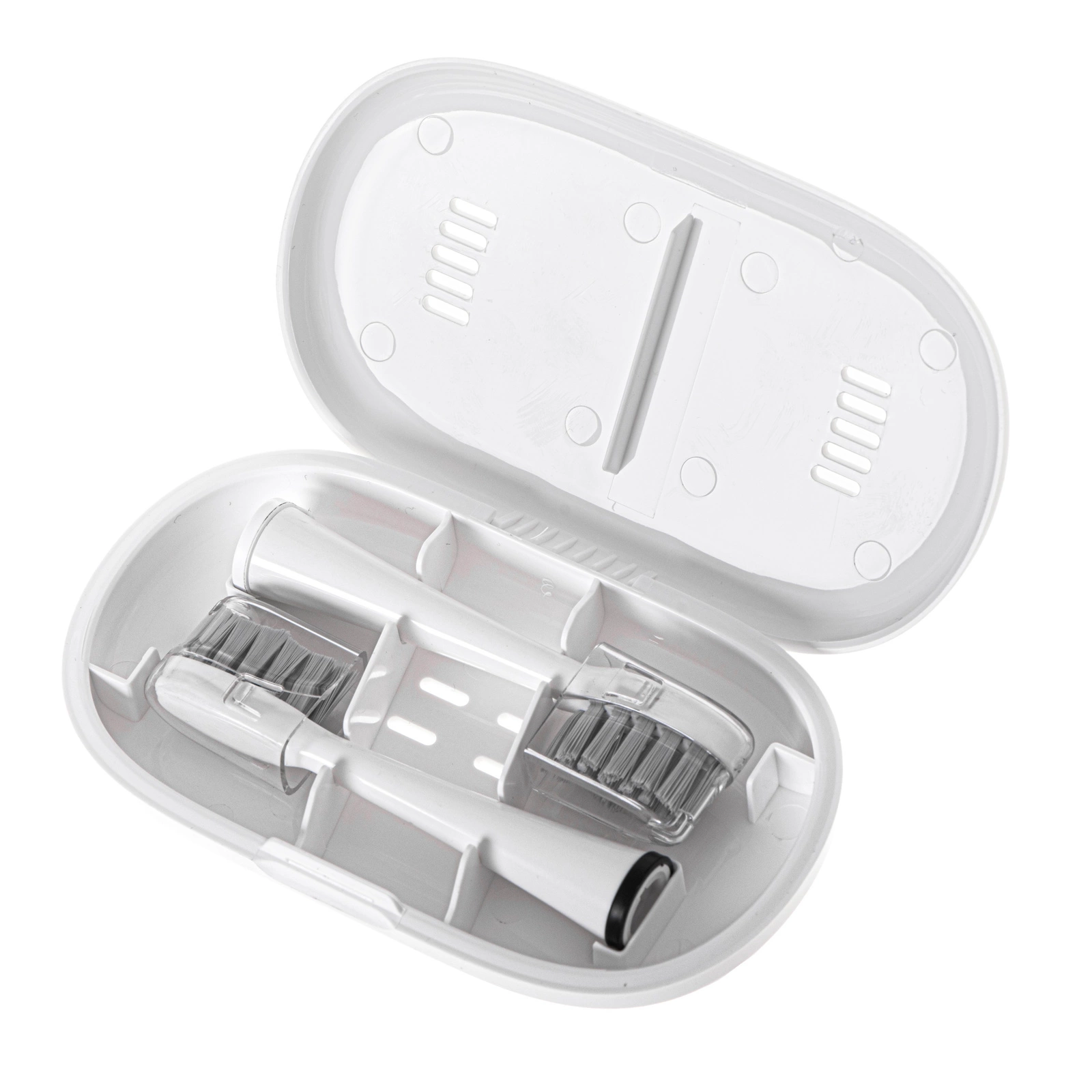 • W zestawie: 2 główki szczoteczki i etui podróżne: Etui zapewnia bezpieczne przechowywanie i transport akcesoriów w czystości i porządku.