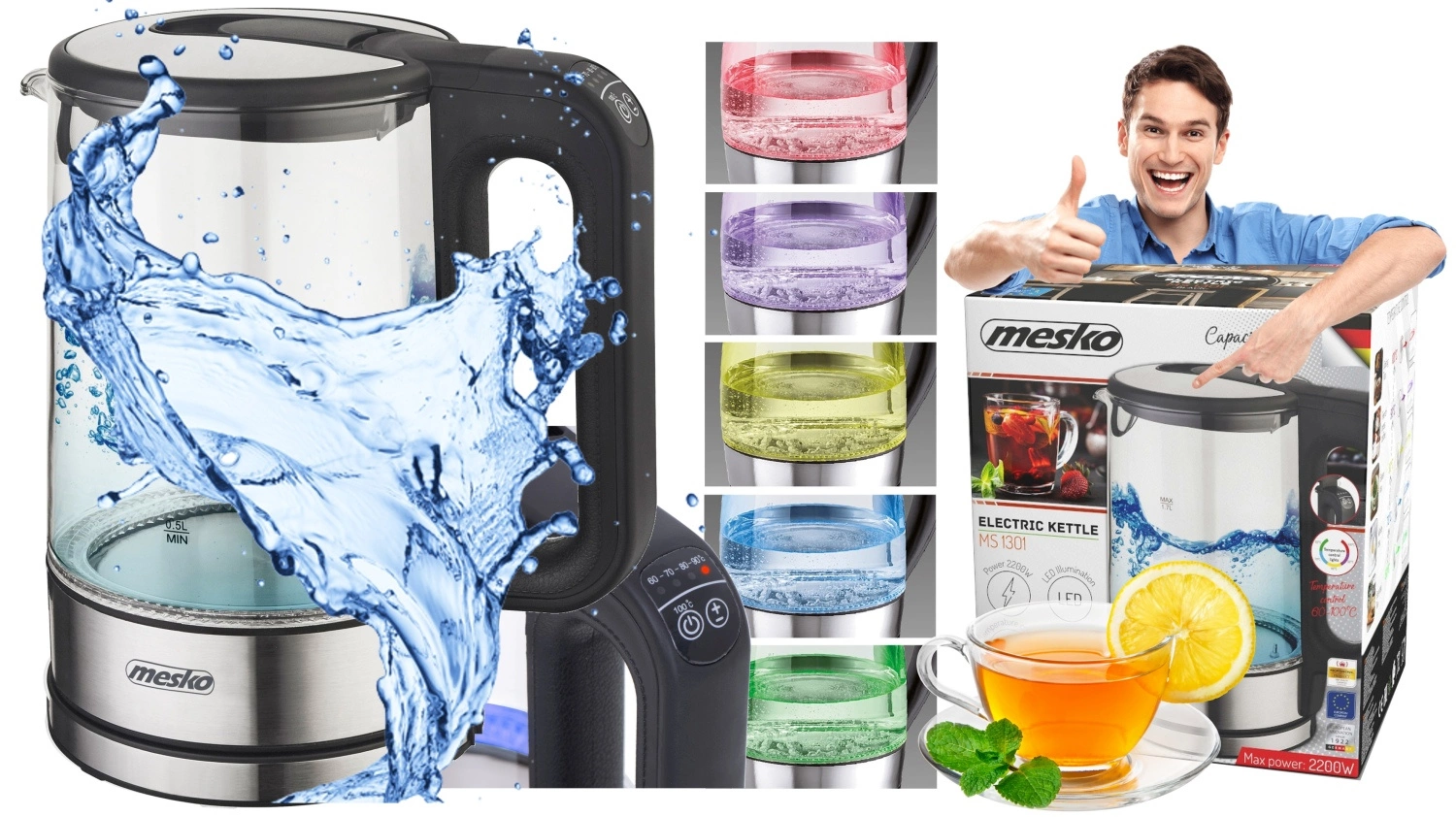 Szklany Czajnik z Regulacją Temperatury 1,7 L, Czarny | Mesko MS 1301