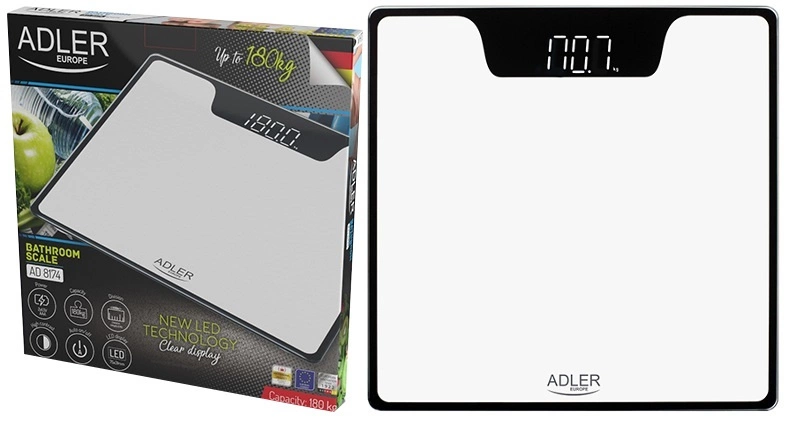 Waga Łazienkowa LED Adler AD 8174 – Duży Udźwig 180kg i Wyświetlacz Wysokiego Kontrastu!