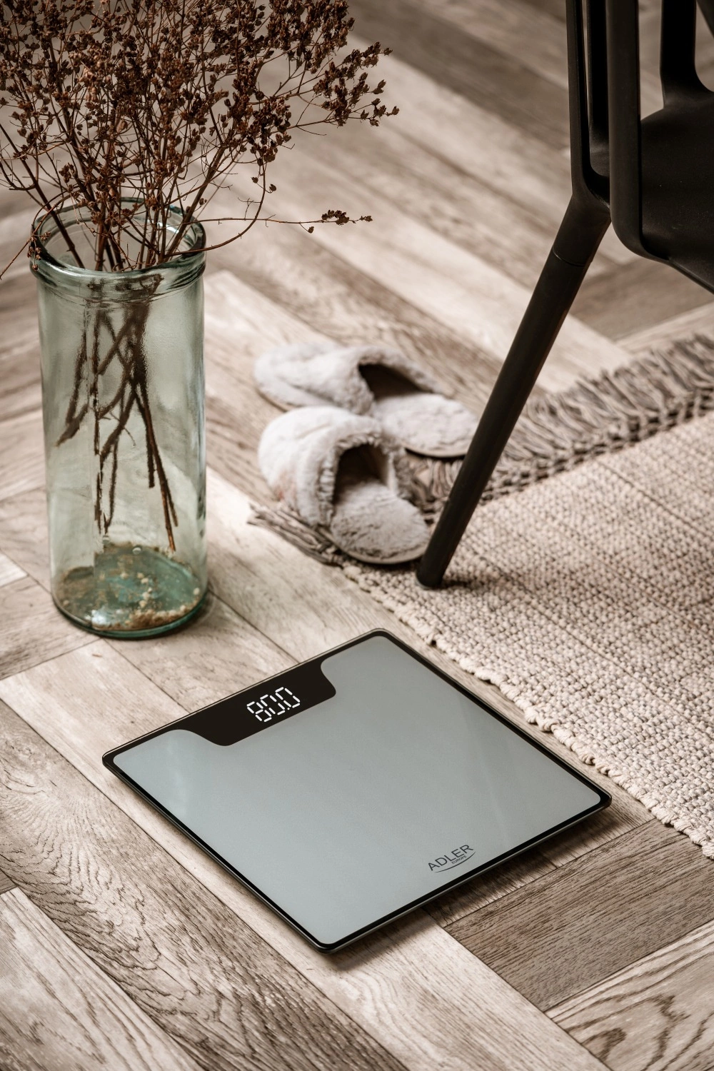 Waga łazienkowa elektroniczna 180 kg, szkło hartowane 6 mm, wyświetlacz LED, Srebrna Adler AD 8174