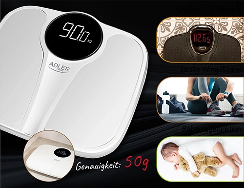 Waga Camry CR 8171 wyróżnia się funkcją ważenia niemowląt i dokładnością do 50 g, co jest rzadkością w standardowych wagach łazienkowych, czyniąc ją idealną dla rodzin. Ponadto, duża powierzchnia ważąca (29,5 x 33,5 cm) i maksymalny udźwig 180 kg zapewniają wygodę i stabilność dla wszystkich użytkowników.