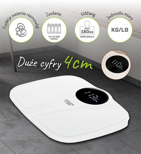 Precyzyjna elektroniczna waga łazienkowa z udźwigiem maksymalnym 180 kg. Doskonały wybór dla sportowców, osób odchudzających się i innych osób dbających o masę ciała. Wykonanie z wytrzymałego tworzywa zapewnia bezpieczeństwo użytkowania. Wysoka dokładność (50 g) pozwala na precyzyjny pomiar.