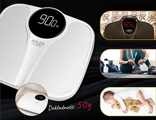 A: Waga posiada tryb ważenia niemowląt, który pozwala na precyzyjne ważenie dziecka. - Q: Jaka jest dokładność pomiaru?