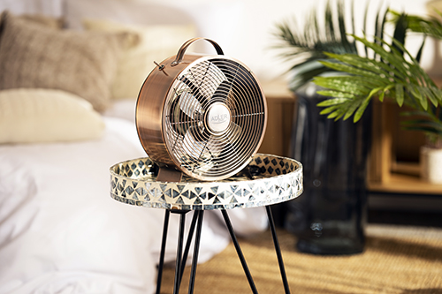 ✨Wentylator jest niewielki i posiada miedzianą powierzchnię w stylu loftowym.