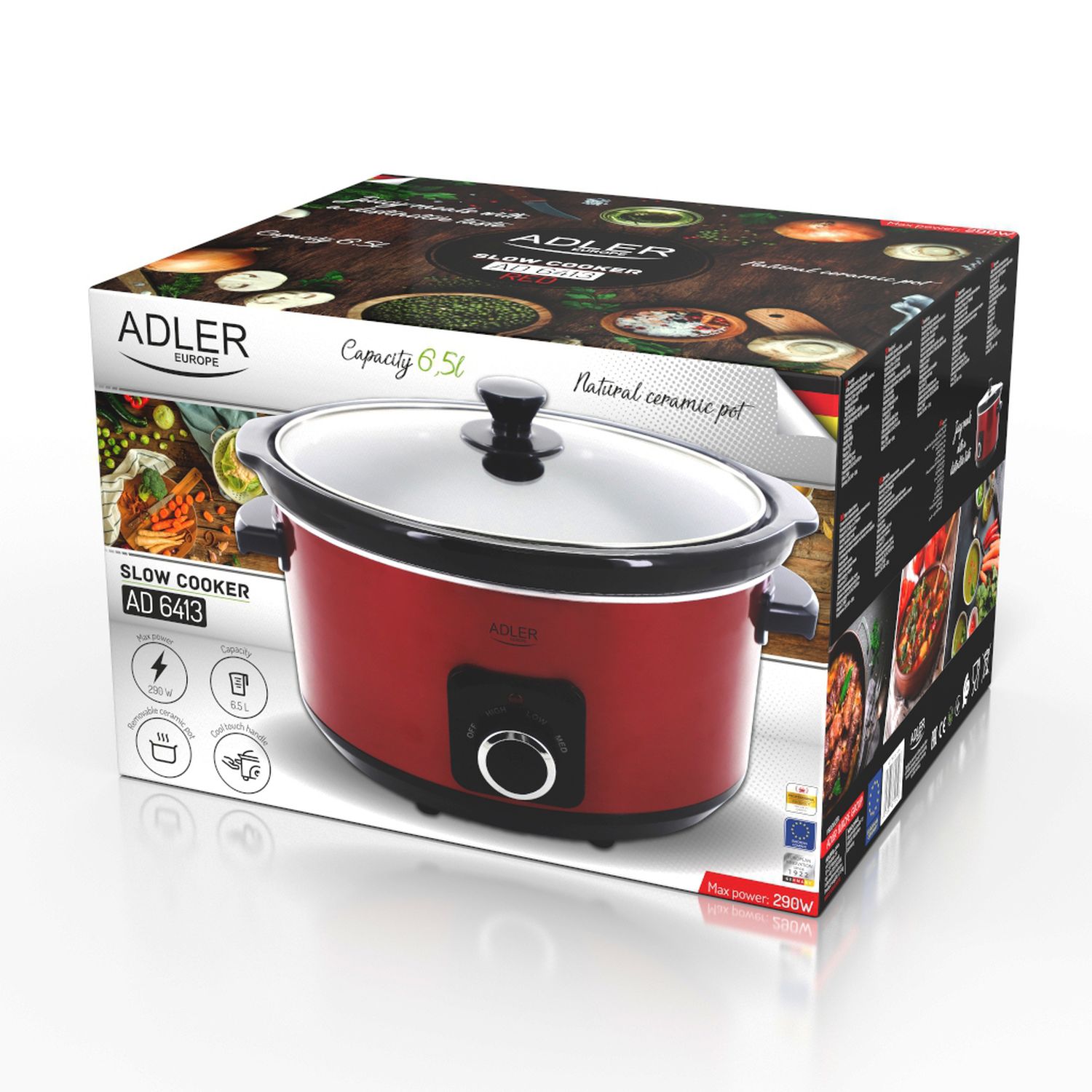Moc urządzenia 290W | 3 poziomy temperatury gotowania: niski, średni i wysoki | Całkowita objętość 5,8L | Ceramiczna misa