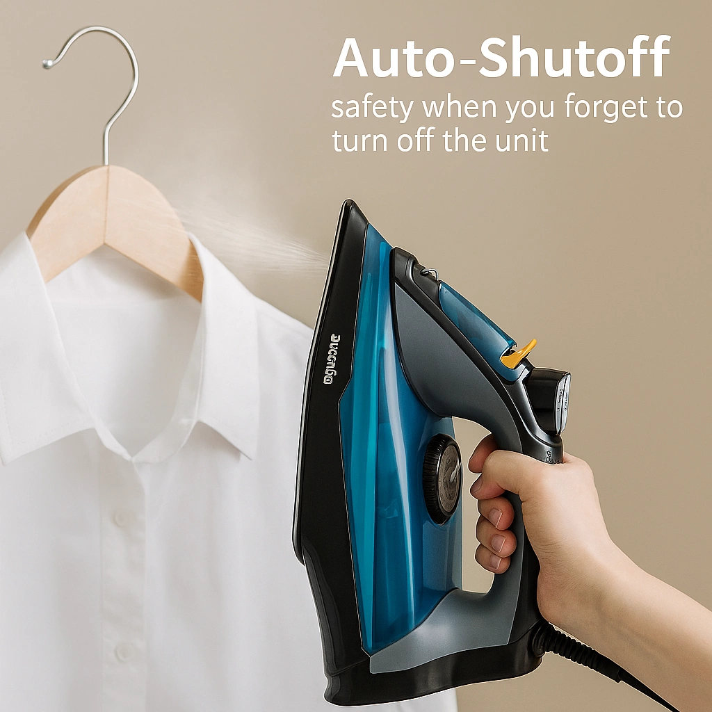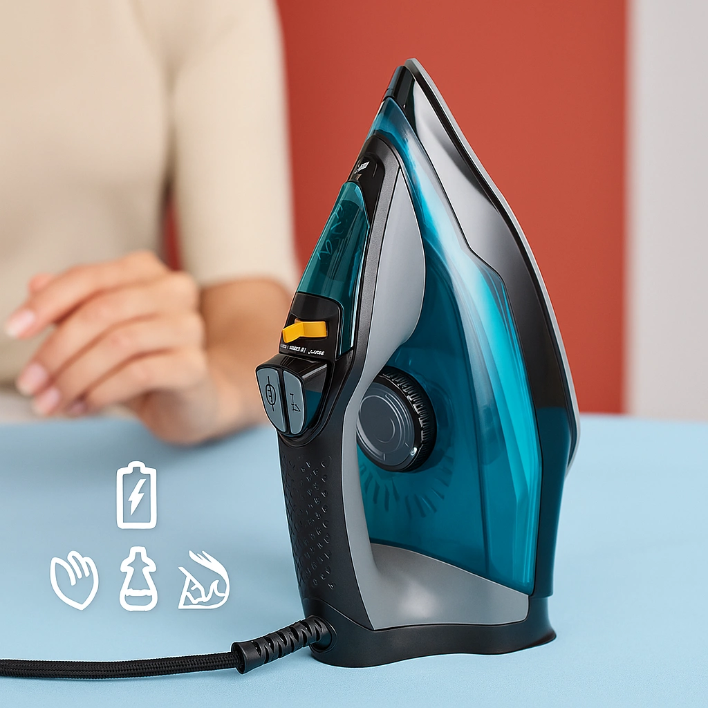 - Automatyczne wyłączenie (strażak): To inteligentne zabezpieczenie! Żelazko wyłączy się samo, gdy pozostanie bez ruchu w pozycji pionowej lub poziomej, zapewniając bezpieczeństwo, nawet gdy o nim zapomnisz.