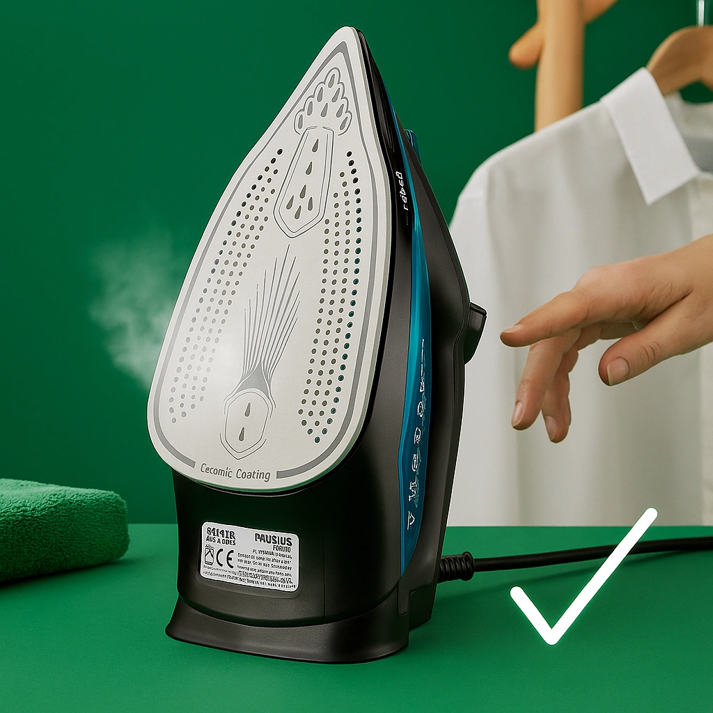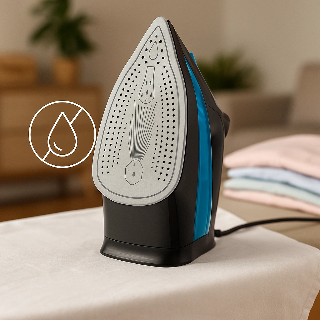 - Systemy: Anti-drip, Anti-calc, Self-clean – kompleksowa ochrona żelazka i ubrań.