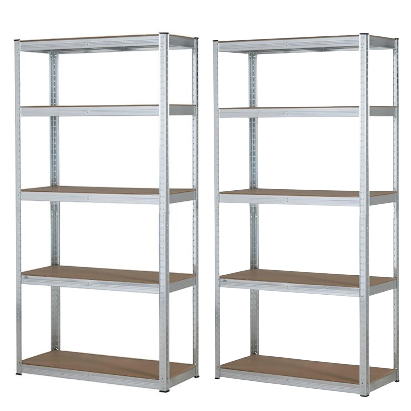 - 2x Kompletny regał magazynowy: Wszystkie niezbędne elementy do szybkiego montażu.