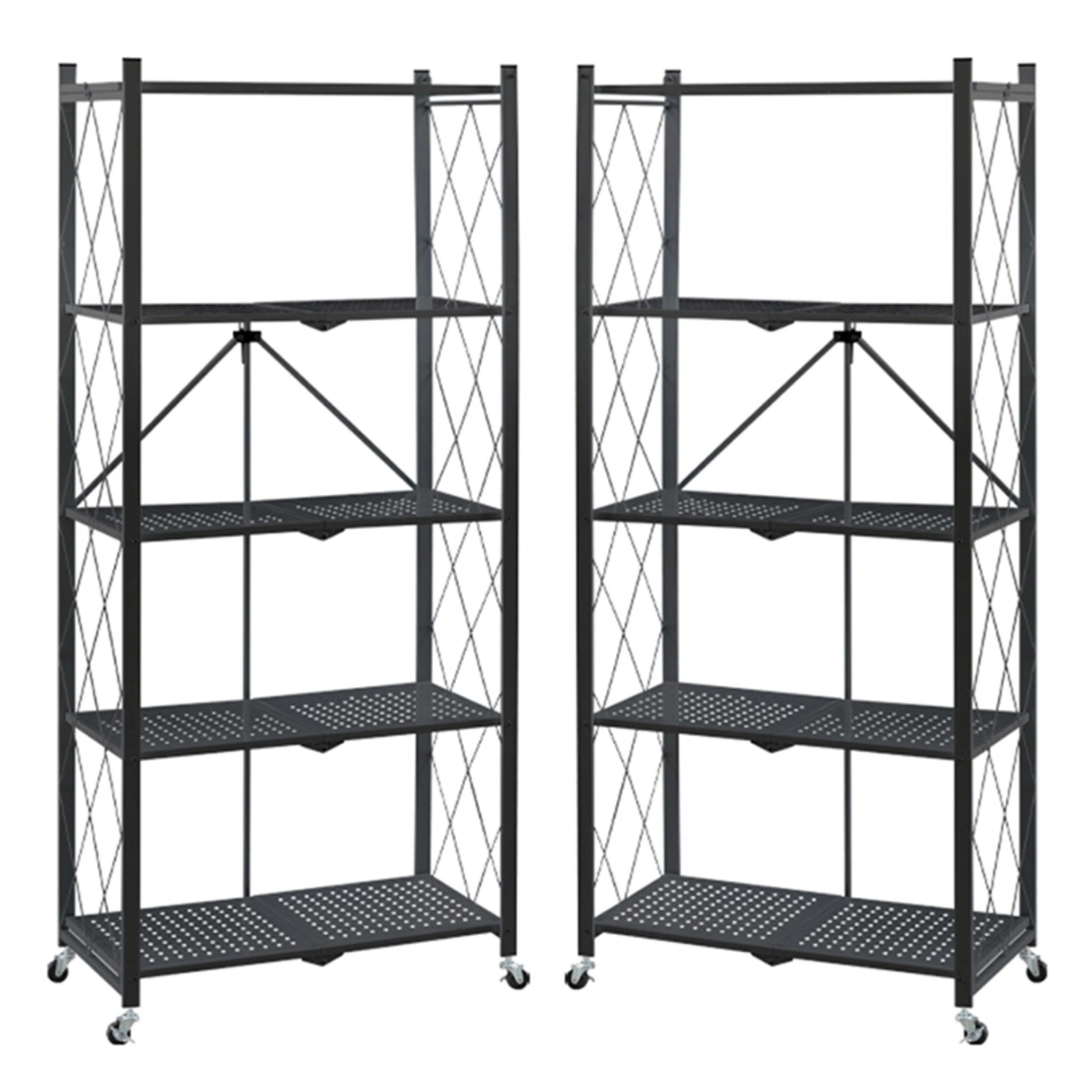 Zestaw 2 Składanych Regałów Magazynowych na Kółkach – Twoja Mobilna Organizacja Przestrzeni!
